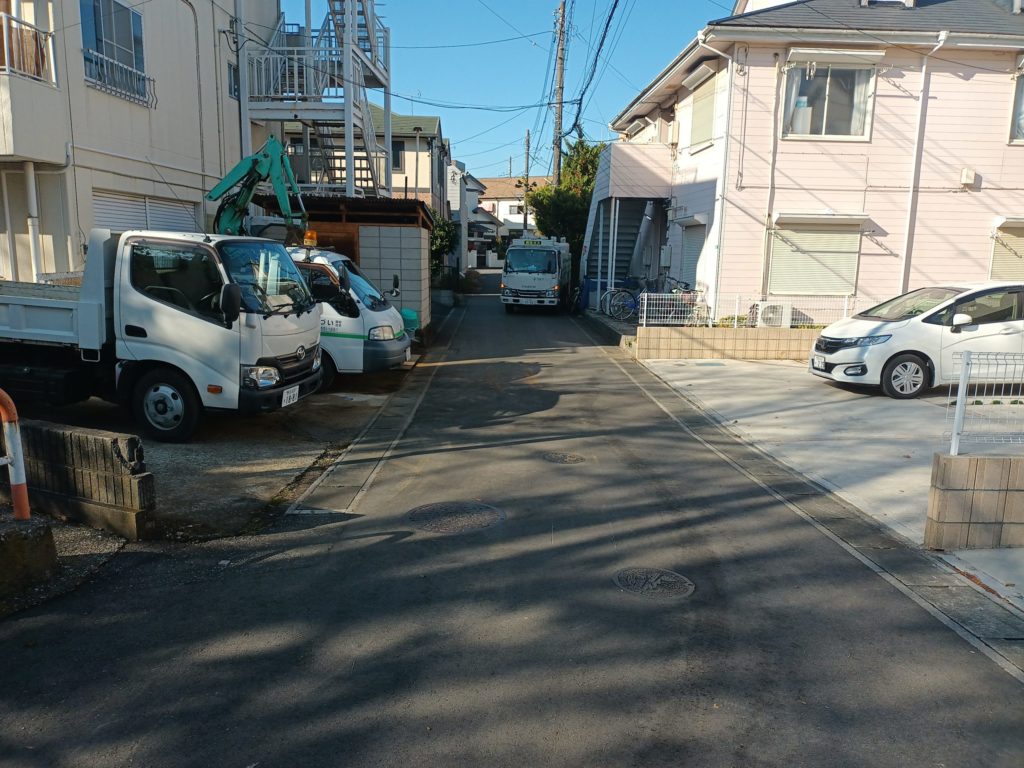 まぁ、よくある道路ですが、この道は、私道と市道が入り組んでいる地域のひとつとなります。