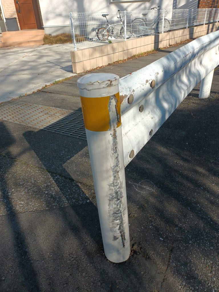 そして、一方通行のため、左折しか出来ませんが、左折に伴い、ガードレールの柱が・・・