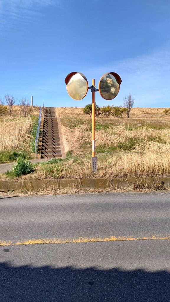 活動を行う際、江戸川沿いの市道にて、カーブミラーが見えずらい部分が見つかりました。